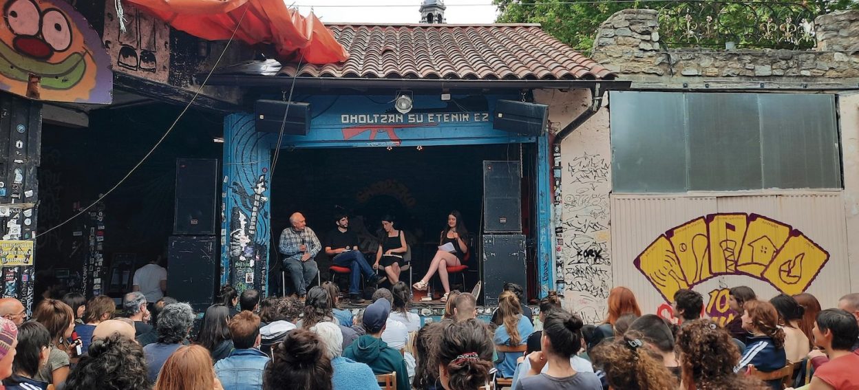 En 1988, unas doscientas cincuenta personas se reunieron en una de las casas que pertenecía al obispo de la ciudad de entonces para okupar lo que hoy es el Gaztetxe de Gasteiz. Pronto cumplirá cuarenta años. Me acerqué al gaztetxe con motivo del festival literario Poesia mailu bat da (La poesía es un martillo), organizado por el grupo de lectura Azpimarra. El título del festival es un verso del escritor y poeta Gabriel Aresti[1] y, según los organizadores, las actividades de aquel día se presentaron «reivindicando el arte como herramienta social»[2]: no querían «un mero divertimento»[3] ni «una exaltación de la belleza o del arte»[4], sino afirmar que «la poesía es un martillo, porque queremos una literatura con los pies en la tierra, porque sabemos que, aunque saltemos, la gravedad tiene más fuerza que nuestros deseos»[5]. Precisamente aquel día fueron invitadas a una mesa redonda personas que se dedican al a escritura Uxue Apaolaza, Joseba Sarrionandia y Martin Bidaur para debatir sobre «la literatura como herramienta para comprender y transformar la realidad»[6].