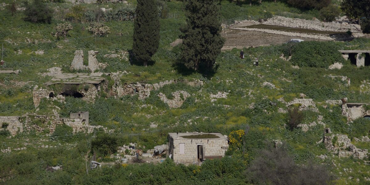 En el film, una nueva vista de dron sobrevuela ahora los restos de ‘Akbara, una aldea cuyos habitantes fueron expulsados en 1948. «Aquí vivían mis padres», «Ese era el patio donde jugábamos», dirán dos recolectoras caminando entre las ruinas. Solo Zeidan Hajib vive aquí ya con sus perros, entre estas huellas de la Nakba.